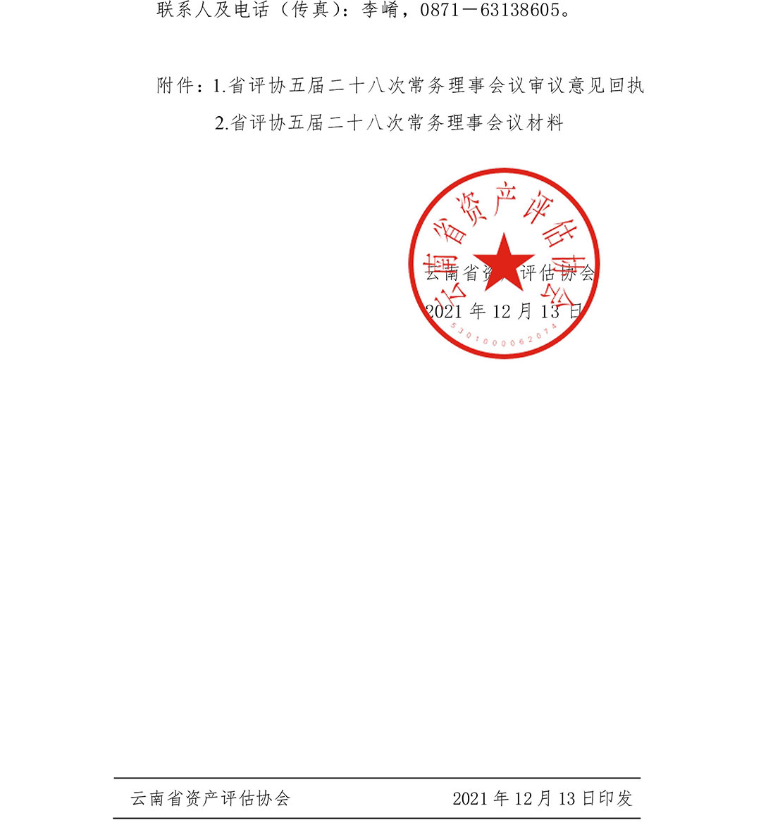 云南省資產評估協會關于召開第五屆常務理事會第二十八次(通訊)會議的通知