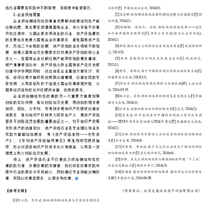 以改革促服務 以服務助改革——論供給側結構性改革及其對資產評估行業的影響